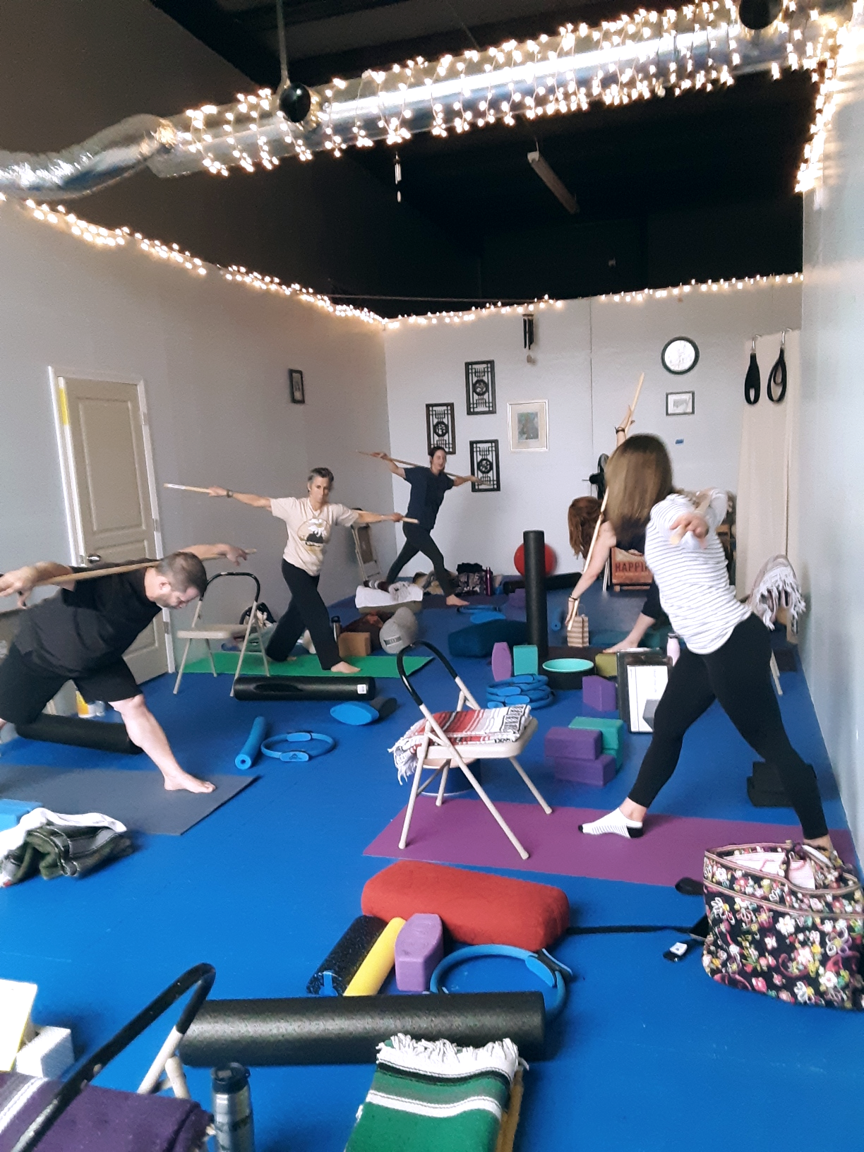 A movement session could be a mix of yoga in the ShambhavAnanda Yoga® tradition, restorative yoga, pilates, and other movements based on group needs.